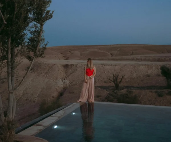 Your adventure begins with a comfortable pick-up in Marrakech. As you leave the city behind, you’ll notice how the scenery quickly shifts — olive groves, rolling hills, and the distant peaks of the Atlas Mountains guide the way. Soon, the stony dunes of the Agafay Desert appear, glowing under the Moroccan sun. Before you know it, you’ll be stepping into a whole new world of calm and beauty.